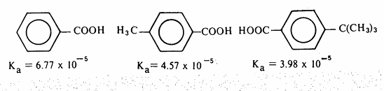ولكن حلقة البنزين أكثر سالبية كهربية من مجموعة الألكيل لأنها تتألف من ذرات كربون من النوع sp2 ولهذا فإن حمض بنزويك أقوى حموضة من حمض الخل بسبب التأثير التحريضي لمجموعة الفينل الساحبة. كما أن استبدال ذرة هيدروجين أو أكثر من حلقة البنزين بمجموعة مانحة للالكترونات يؤدي إلى ضعف الحموضة في المركبات الناتجة من هذا الاستبدال، ويعزى ذلك لنفس الأسباب السابقة وهو مدى ثبات القاعدة المرافقة، كما يتضح من الأمثلة التالية: