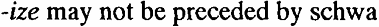 We may now turn to another problem that occurs with vowel-final bases. It can be observed that there is one vowel that never occurs immediately before -ize, namely schwa. This generalization is formulated in (2):