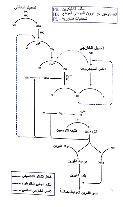 شكل (1) السبيلان الداخلي والخارجي والسبيل المشترك لشلال التخثر.