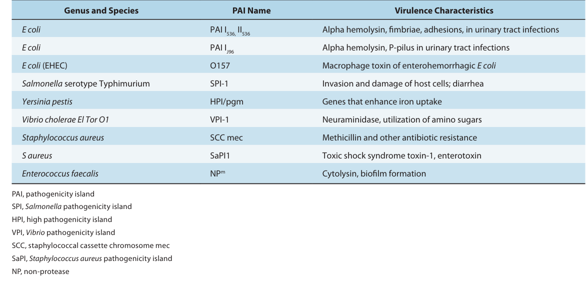 Table2. A Few Examples of the Very Large Number of Pathogenicity Islands of Human Pathogens