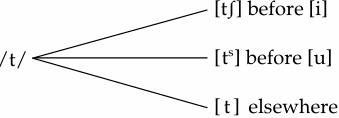 As we see, the renditions for the /t/ targets of English are varied: correct in totem, [tʃ] in city, team, and tea, and [ts] in tune. While the situation may initially look rather chaotic, a more careful look at the productions shows that the erroneous renditions in the form of [tʃ] and [ts] are not random, but systematic. Namely, the /t/ target of English is realized as [tʃ] if it is followed by /i/, and is realized as [ts] if it is followed by /u/. When the target /t/ is followed by any other sound, the learner’s renditions are correct. The explanation for these phenomena is directly related to the learner’s native language patterns, which can be illustrated as follows: