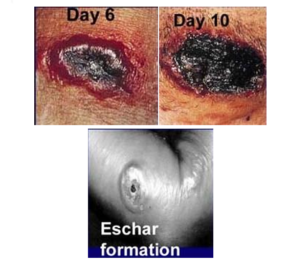 شكل (1) مراحل تطور الجمرة الخبيثة الجلدية .