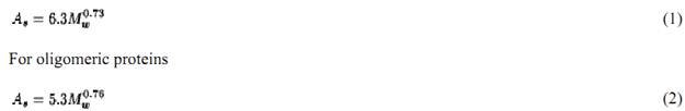 These equations are usually accurate to within ±4% on average for monomers and 5% for oligomers. Equations 1 and 2 imply that an oligomeric protein has a larger accessible surface area (by 7 to 13%) than a monomeric protein of the same molecular weight in the molecular weight range up to 35,000.