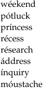 * = In addition to not having the secondary stress, these items have the primary stress on the second (not first) syllable in BE.