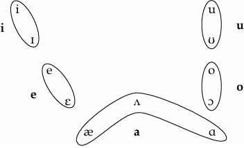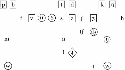 The overlay of the native language phonemes onto the target English inventory reveals the following: