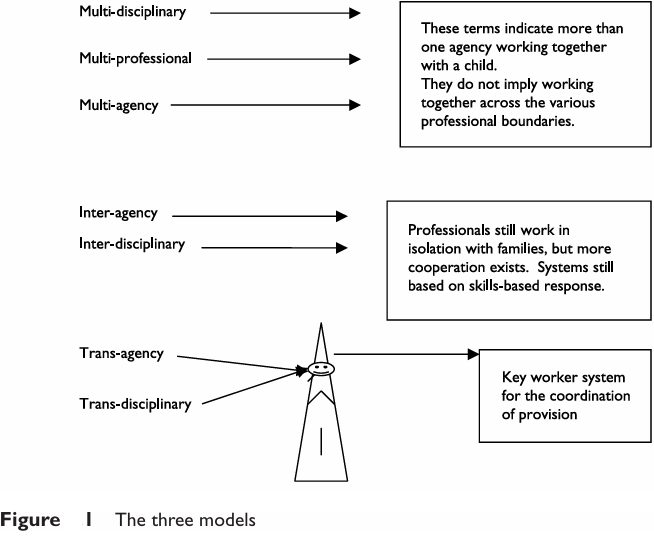 Despite these clear descriptions, there needs to be a word of warning. When working initially with a different agency or discipline, do not assume that the term ‘trans-agency’ or ‘multi-agency’ will mean the same to them as it does to you. Make sure that all the terminology to be used is clearly understood by all the individuals involved in any meeting or joint project, whether professionals or parents (see Figure 1).