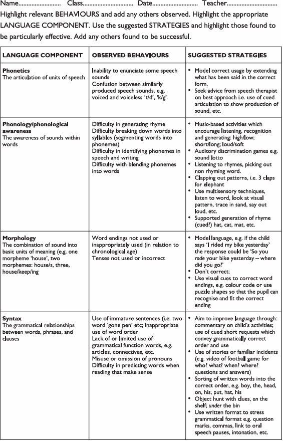 ■ He or she is ‘cued’ to listen either by the instruction ‘Listen, Jamie’ or by a cue card (containing the class symbol for listening)