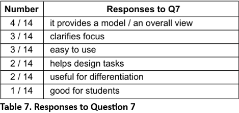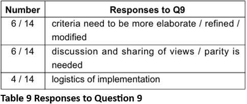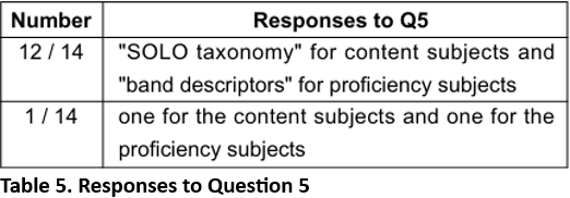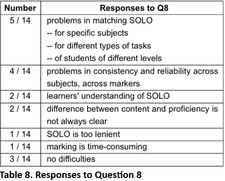 Table 6 indicates that the majority of staff members reported to have adhered to the SOLO taxonomy, though a few complained about it being difficult to follow. Details of the difficulties in applying the SOLO taxonomy will be discussed under Question 8.