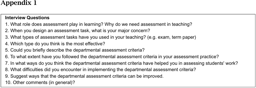 In spite of the widely accepted philosophical underpinnings of SOLO, a couple of practical issues have to be addressed. The major problem that needs to be solved is the need for better coordination for ensuring reliability and validity of the use of the criteria. It is suggested that more explicit guidelines be devised and that parity meetings involving different subjects and teachers will help to solve the problem. Another crucial step that the department should take is to accumulate good practices and document the experience that staff members have gained in order to provide a basis for further review and future reference.