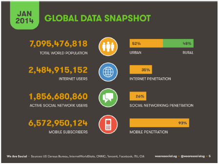 إضافة مجمل سكان العال وإلى أعداد مستخدمي الشبكات الاجتماعية والهواتف المحمولة.