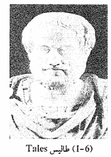 ــ طاليس Tales 546-640 ق.م)، الذي تحدث عن وجود الماء بثلاثة أشكال أو حالات (السائلة والصلبة والغازية)، وأن الماء هو أصل الحياة، وأشار إلى أن معرفة المناخ تتيح إنتاج زيتون جيد.