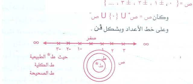 وهي مجموعة الاعداد الصحيحة السالبة والصفر ومجموعة الأعداد الموجبة وتكتب على الشكل