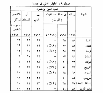 ويوضح الجدول الآلى (رقم 9) التدهور الديني في أوروبا.