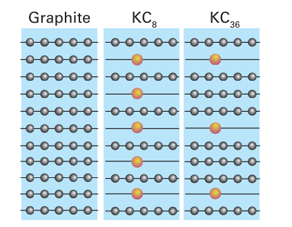 Figure 14.4 Potassium graphite compounds showing two types of alternation of intercalated atoms.