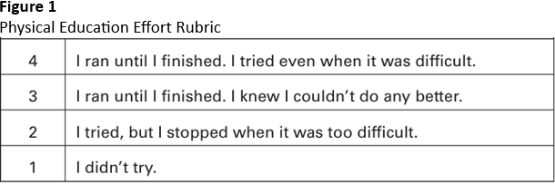 For two weeks, students in Ms. Pickering’s physical education class kept track of their level of effort using the rubric in Figure 1 They also tracked their times for running 100 meters. At the end of the two-week period, they discussed what they had learned about themselves.