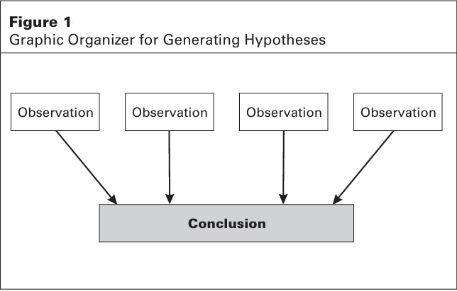 Likewise, when students return to the classroom from a walk around the neighborhood, explain that they need to be ready to share the pieces of evidence that led to their conclusions. For example, if they noticed that a particular house had skis hanging in the garage, a basketball hoop above the driveway, tennis rackets on the porch, and a volleyball net in the backyard, they could reasonably conclude that the people living there are very involved in sports. Figure 1 presents a graphic organizer that you can use to help students understand what kind of information you are looking for.