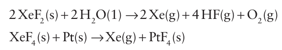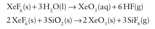 Key points: Xenon fluorides are strong oxidizing agents and form complexes with, F such as XeF5, XeF7, and XeF8-2; they are used in the preparation of compounds containing Xe O and Xe N bonds. The reactions of the xenon fluorides are similar to those of the high oxidation state interhalogens (Section 17.10), and redox and metathesis reactions dominate. One important reaction of XeF6 is metathesis with oxides: