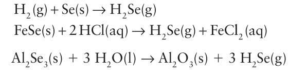 Acidic solutions of H2S are mild reducing agents and deposit elemental S on standing. In a similar way, H2 Se can be made by direct combination of the elements, by the reaction of FeSe with hydrochloric acid, or by hydrolysis of Al2Se3:
