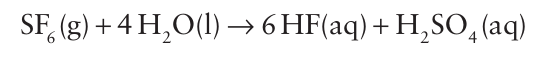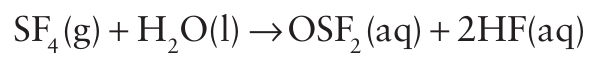 The less sterically crowded SeF6 molecule is easily hydrolysed and is generally more reactive than SF6 . Similarly, the sterically less hindered molecule SF4 is reactive and undergoes rapid partial hydrolysis:
