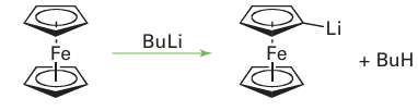 As might be imagined, the lithiated product is an excellent starting material for the synthesis of a wide variety of ring-substituted products and in this respect resembles simple organo lithium compounds (Section 11.17). Most Cp complexes of other metals undergo reactions similar to these two types where the five-membered ring behaves as an aromatic system.