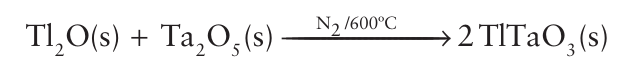 the use of highly reactive nickel oxide particles produced by spray pyrolysis allows the reaction to occur to completion at under 700°C and in only 3 hours, which is at a lower temperature and much faster than would be needed with polycrystalline NiO. The reaction environment may need to be controlled if a particular oxidation state is required or one of the reactants is volatile. Solid-state reactions can be carried out in a controlled atmosphere, using a tube furnace in which a gas can be passed over the reaction mixture while it is being heated. An example of such a reaction is the use of an inert gas to prevent oxidation, as in the preparation of TlTaO3: