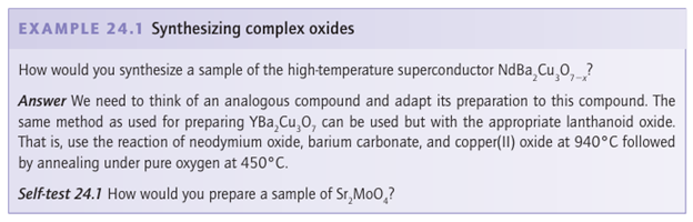 Key point: Thermal decomposition of volatile inorganic compounds can be used to deposit films of materials, particularly those with uses in electronic devices, on substrates. The technological applications of the materials described in this chapter often require the inorganic material to be generated as a thin layer or film, for example on a silicon substrate, and it has become necessary to develop techniques to deposit films of many inorganic materials. The principal method is chemical vapour deposition (CVD), in which a volatile inorganic compound is decomposed above the substrate. When the compound is a metallo-organic complex (that is, a complex of a metal atom with organic ligands), this route is known as metallo-organic chemical vapour deposition (MOCVD). A large area of research has grown up around the design and synthesis of volatile inorganic compounds that can be used for CVD. For many electronic compounds, simple metal alkyls provide a route to depositing the metal or, through reaction with other gas molecules, its compounds. Thus, Me2 Zn, which has a vapour pressure of 0.3 bar at room temperature, can react with H2 S above a substrate to generate the Group 12/16 (II/VI) semiconductor ZnS (and methane). For others, such as In, the metal alkyl is a solid with a low vapour pressure at room temperature (for Me3In, less than 2 mbar) and it cannot easily be used. In such cases other volatile compounds must be found. This search focuses on other organometallic compounds such as carbonyls, cyclopentadienyl complexes, acetoacetonates, and thiocarbamates, although it should be noted than many of these volatile metal compounds are highly toxic. For complex oxides, such as the superconducting cuprate YBa2Cu3O7, suitable precursors are required for each of the metals; the challenge is to find volatile molecules of the electropositive elements Ba and Y, which normally form ionic compounds. Metal -diketonates have been found to be useful in this respect, as compounds such as the 2,2,6,6-tetramethyl-3,5-heptanedione complex of yttrium sublime at about 150ºC.