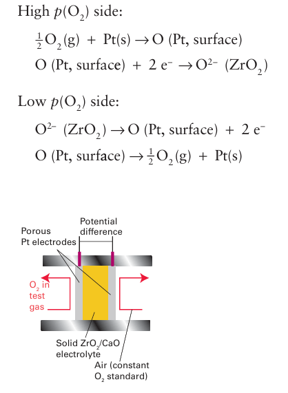 Figure 24.9 An oxygen sensor based on the solid electrolyte Zr1-x CaxO2-x .