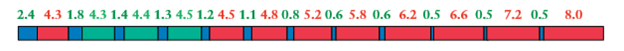 with GaAs layers in red, AlAs in blue, and Si-doped layers in green. This sequence leads to a functional layer thickness of 72.8 nm, which is much larger than most superlattice periods. The superlattice itself consists of 40 such layers.