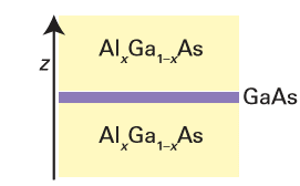 Figure 25.21 An (AlxGa1-xAs) -(GaAs) -(AlxGa1-xAs) quantum well; the thickness of the GaAs layer is on the nanoscale.