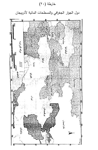 ويقصد به موقع دولة ما مع دول الجوار وعدد الدول التي تجاورها وتشاركها الحدود السياسية ، وتحد أذربيجان خمس دول ، وهي روسيا من الشمال وايران من الجنوب وجورجيا من الشمال الغربي وأرمينيا من الغرب ، وتركيا من الجنوب الغربي، وهي بهذا تجاوز دولتين إسلامية ايران وتركيا وثلاث دول غير إسلامية (روسيا، جورجيا ، أرمينيا) ، أما من الشرق فهي تطل على بحر قزوين ، أما حدودها مع أرمينيا (موضوع التطبيق) فهي تحدها بطول (787) كم، وهو أطول خط حدود مع دول الجوار ، وقد برزت عدة مشكلات بينها وبين أرمينيا كانت ابرزها مشكلة إقليم (كارباخ) ، وفي فلسلفة الجغرافية السياسية كلما زاد عدد دول الجوار وأطوال حدودها ظهرت هناك مشكلات اكثر بين هذه الدول لا سيما اذا كانت الدولة محاطة بدول مختلفة عنها بالنواحي الإيديولوجية ، كما يشكل ذلك ضعفاً جيوبوليتكياً.