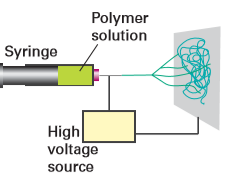 Figure 25.34 The electrospinning apparatus. (Adapted from R. Sen, et al., Nano Lett., 2004, 4, 459.)
