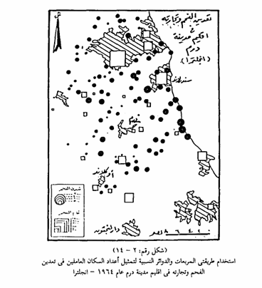 ويمكن استخدام الدوائر النسبية جنباً إلى جنب مع المربعات النسبية على خرائط السكان وذلك إذا أردنا تمثيل ظاهرة سكانية تختلف عن ظاهرة سكانية أخرى بنفس الاقليم فإننا نقوم باستخدام الدوائر النسبية لإحداها ويمكن إجراء ذلك على خريطة واحدة مثل الخريطة التي يتمثل فيها عدد السكان العاملين في تعدين الفحم بالدوائر النسبية وعدد السكان القائمين على تجارته بالمربعات النسبية في اقليم مدينة درم بالمملكة المتحدة.