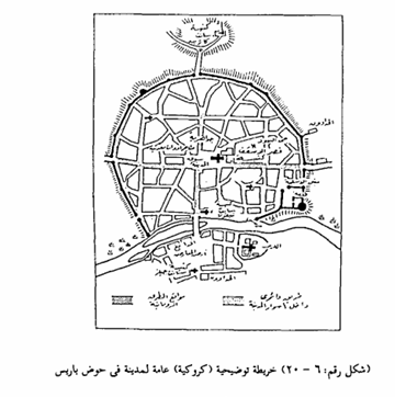 لازالت الخريطة التوضيحية تمثل أداة أساسية ووسيلة لا غنى عنها يعتمد عليها الجغرافي في توضيح موقع وموضع وشخصية الحلات العمرانية، كما أنها تستخدم في تفسير وتحليل شكل ووظيفة هذه الحلات ومثل هذه الخريطة تصور على أساس اختياري - العناصر المورفولوجية المميزة للمدينة، إلى جانب الاستخدامات الكبرى للأرض القائمة على الوظيفة الأساسية للمدينة، والأنماط الكبرى للطرق وخطوط السكك الحديدية وبعبارة أخرى فإن الخريطة الكروكية تمثل رسماً مبسطاً ومختصراً للظاهرات والخصائص الأساسية للمدن والتي يمكن للناظر إلى الخريطة التعرف عليها من أول وهلة ، ويعتمد رسم الخريطة التوضيحية الكروكية على البيانات المستقاة من الخرائط الطبوغرافية مثل خطوط الكنتورالرئيسة وحدود المناطق المبنية، وخطوط المواصلات الرئيسة بالإضافة إلى بعض المصادرالأخرى مثل الخرائط الجيولوجية والتاريخية، والمشاهدات الميدانية بغرض توضيح أو تمثيل بعض المواضع الخاصة وبطبيعة الحال يتوقف اختيار أي من هذه البيانات على الهدف الذي من أجله تصمم هذه الخريطة كما يستلزم تحليل أشكال المدن إنشاء أشكال بيانية عامة تتضمن توضيحاً لظاهرات مميزة لخطة وتركيب الأنماط الاقليمية لهذه المدن ومثل هذه الأشكال البيانية تعرف باسم الخرائط التوضيحية (الكروكية) العامة وأهم ما يلاحظ على هذا النوع من الخرائط التوضيحية أنها ترسم عادة بدون مقياس رسم لكي توضح العلاقات بين الموضع والظاهرات السطحية، كما أنها في نفس الوقت تحافظ على الحيز الذي تشغله المدينة ومن ثم فقد يطلق أحياناً اسم الأشكال التوضيحية Cartogram على مثل هذه الخرائط.