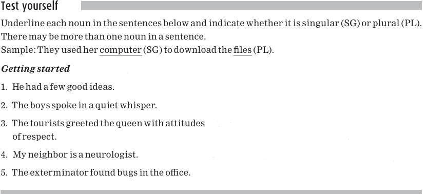 What’s the difference between cat and cats? The noun cat is used when it refers to only one cat; its form is singular. The noun cats is used when it represents more than one cat; its form is plural. Thus, the singular and plural forms tell us about number. Below are some nouns in their singular and plural forms.