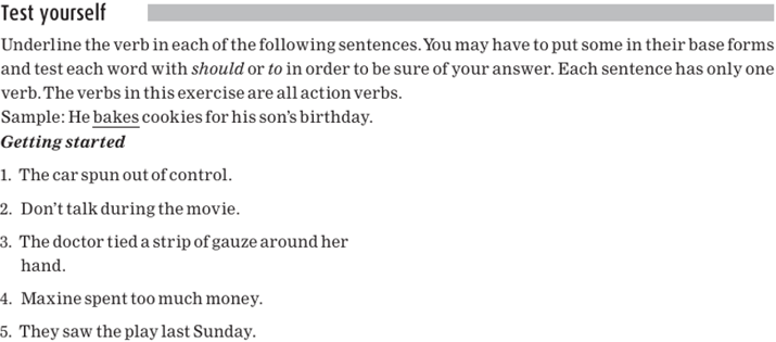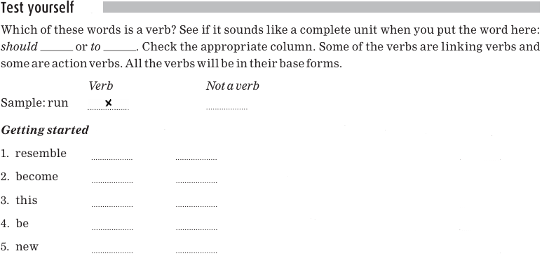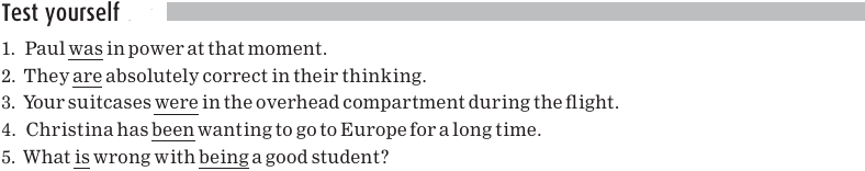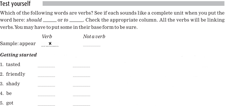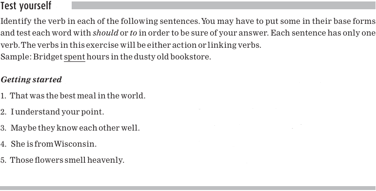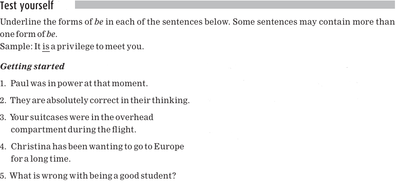 Notice how different these forms are from the base form of be. In fact, be is the most irregular verb in the English language: it has more forms than any other verb. But you can still use the should or to test to identify be as a verb: You should be happy, They decided to be happy. For convenience, the forms of be are indicated in Quick tip.