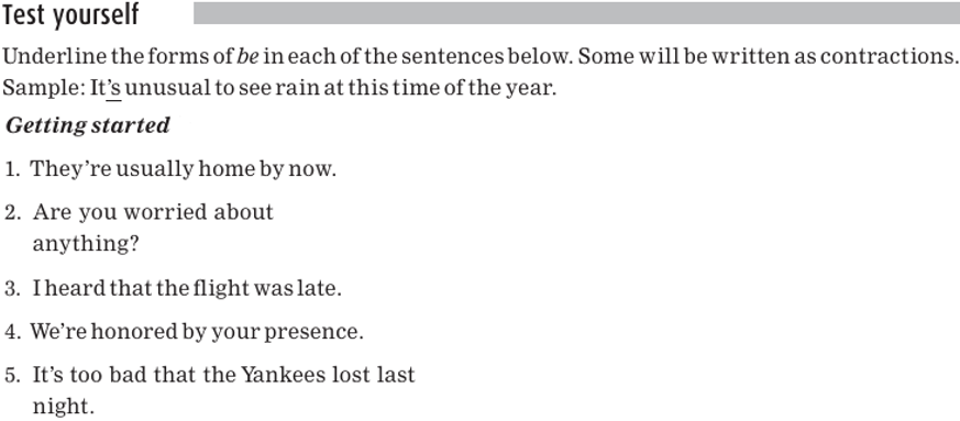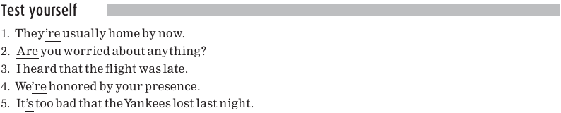 Often, forms of the verb be are said and written as contractions, as in these sentences: