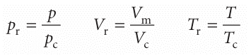 An important general technique in science for comparing the properties of objects is to choose a related fundamental property of the same kind and to set up a relative scale on that basis. We have seen that the critical constants are characteristic proper ties of gases, so it may be that a scale can be set up by using them as yardsticks. We therefore introduce the dimensionless reduced variables of a gas by dividing the actual variable by the corresponding critical constant: