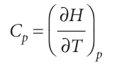 The enthalpy of a substance increases as its temperature is raised. The relation between the increase in enthalpy and the increase in temperature depends on the conditions (for example, constant pressure or constant volume). The most important condition is constant pressure, and the slope of the tangent to a plot of enthalpy against temperature at constant pressure is called the heat capacity at constant pressure, Cp, at a given temperature (Fig. 2.14). More formally: