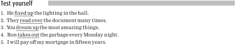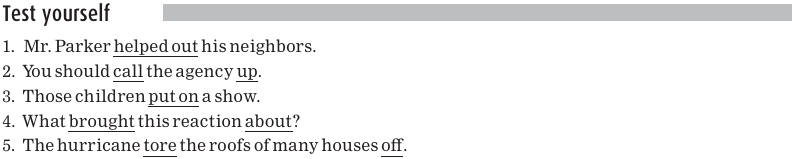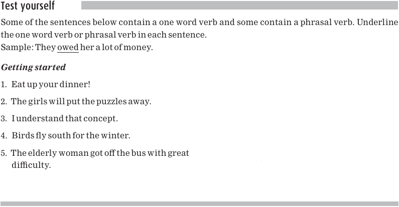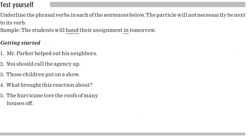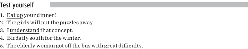 While most verbs are single words, some are phrasal: they contain two words. In phrasal verbs, the first word is a verb and the second word is called a particle. Here are some examples, with the phrasal verbs underlined: