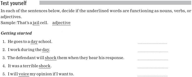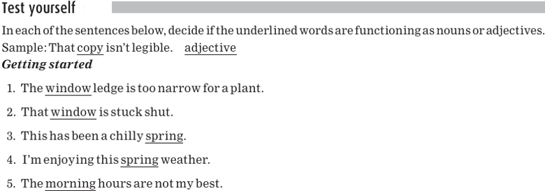 Remember that sometimes a word can function as one word category, or part of speech, in one sentence, and as another word category in another sentence (see Concrete and abstract nouns). For example, let’s look at the word cream. In the sentence I brought the cream, cream is a noun. But in the sentence That’s a cream cake, cream is an adjective, telling us more about the noun cake.