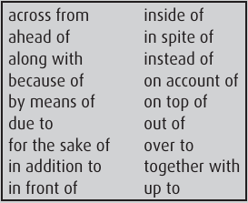 Each of these sentences contains a multiword preposition, that is, a preposition consisting of more than one word. Below is a list of common multi word prepositions, commonly called compound or phrasal prepositions.