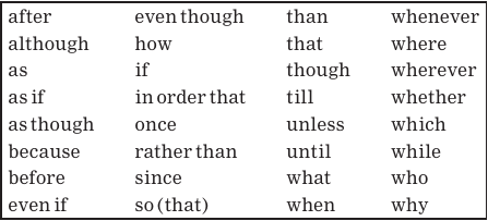 The common subordinating conjunctions are listed below.
