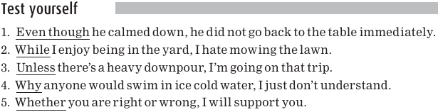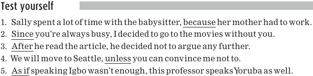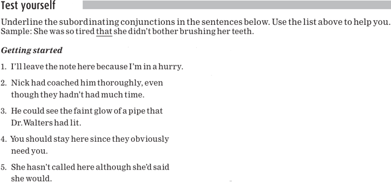 Notice that the subordinating conjunction is always the first word of the dependent clause.