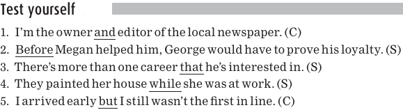 Don’t confuse conjunctions with prepositions. Some words may function as either: