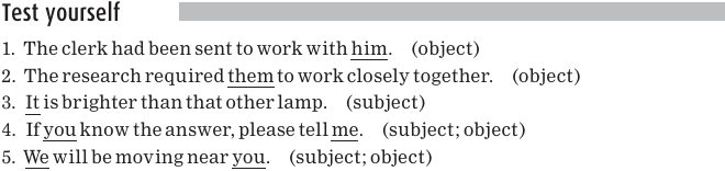 You can see that two pronouns, you and it, are particularly hardworking: they can function as either subject or object pronouns.
