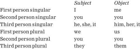 Subject and object pronouns