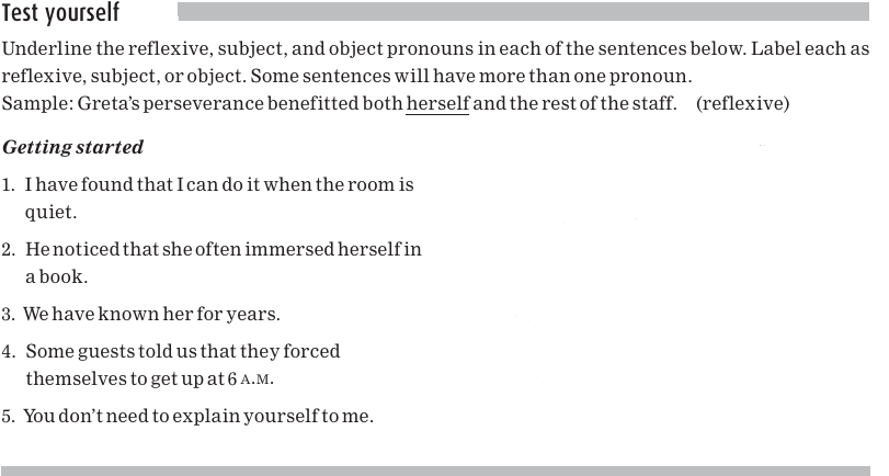 Quick tip lists the reflexive pronouns. They’re easy to identify because they all end in-self or-selves.