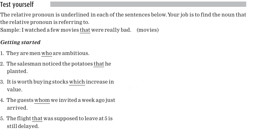 You’ve probably noticed that, unlike sentences 1 and 2 above, sentences 3 and 4 are not questions. The same pronouns are being used, but not to ask a question. Instead, these pronouns are used in sentences 3 and 4 to replace a noun that’s already mentioned earlier in the sentence. When used this way, these pronouns are called relative pronouns. They are listed in the following Quick tip.