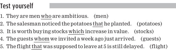 9. I think the car that you want was sold yesterday. (relative pronoun: introducing a clause and referring back to a noun)
