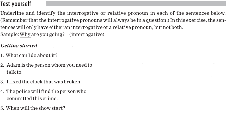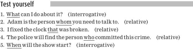 Here are some sentences with interrogative pronouns, like the ones you’ve already seen. The interrogative pronouns are underlined.